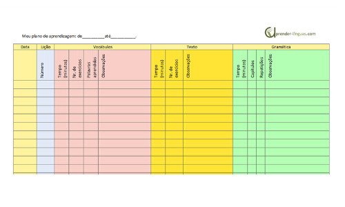 A cada dia depois de ter terminado o seu estudo, insira o seu progresso no plano de aprendizagem. Desta forma, você será capaz de ver todos os dias no preto e no branco, em qual lição você se encontra e como você progrediu nos últimos dias de estudo.